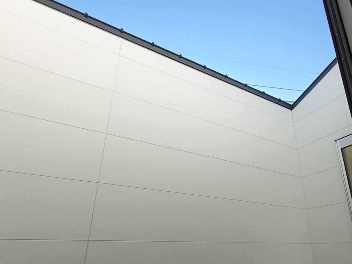 特徴はシンプルな外観でありながら、中庭や勾配天井、ビルトインガレージなど、こだわりと性能を両立させたお家です、平屋のようなフォルムをベースに2階部分を効率的に部屋を配置させたプランニングも見どころです。