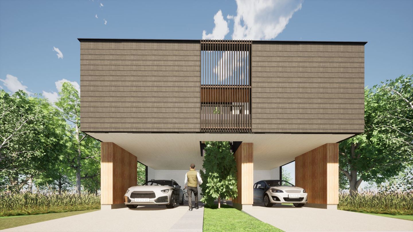 ガレージの2階部分にも居室が配置される場合は、2階の重量もガレージ部分に加重されるので、余計に強度が必要となり、実現が難しいのです。