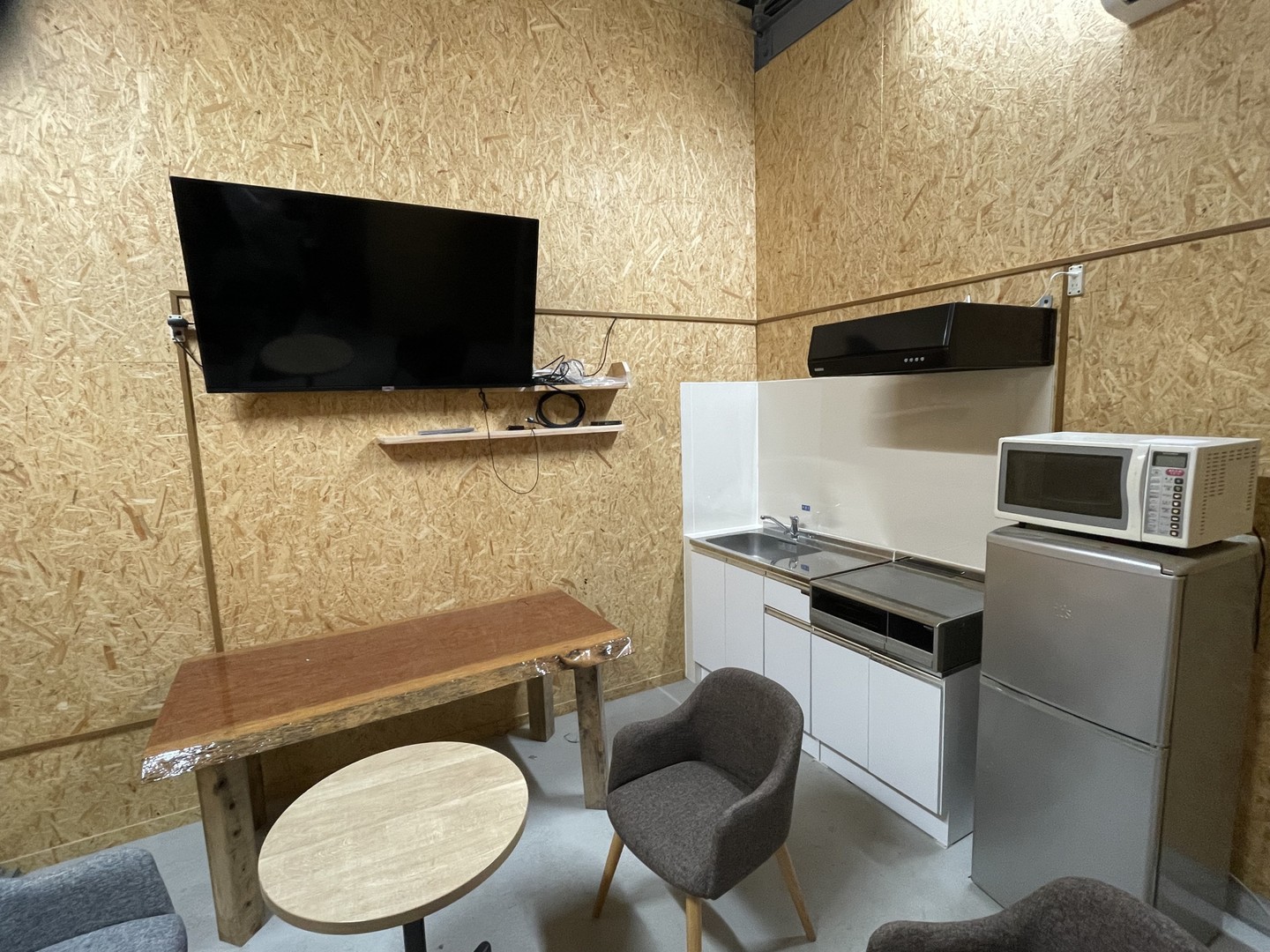 エアコン付き休憩所(大型デスプレー有)、共有駐車場、