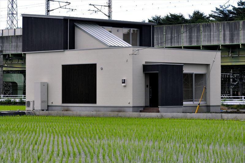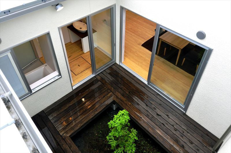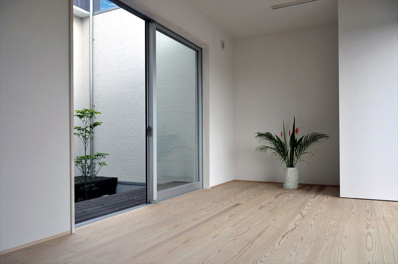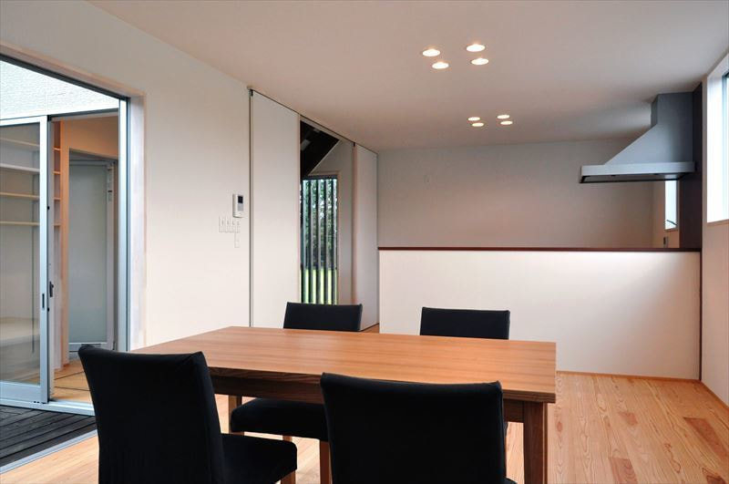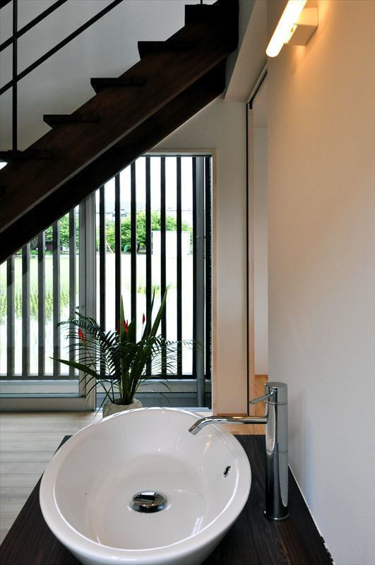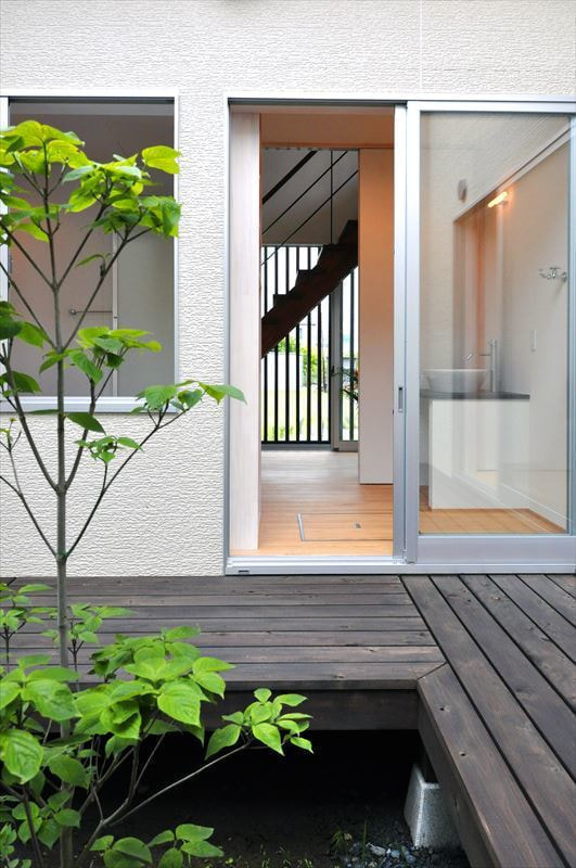DO HOUSEの施工事例 土地の東側を新幹線が通るため、騒音、プライバシーに配慮しつつ最大限に明るく開放的な住まいを実現しました。東側に窓はなく「外は閉じ中を開く」発想で中庭を設け、リビングや水廻りを配置しています。室内も自然素材を採用し、床材には八溝杉、壁は珪藻土クロス、造作建具にしています。造作されたスケルトン階段の向こうから外の緑を見ることができ、明るくモダンで落ち着いた空間が縦に横に広がっています。 敷地面積 床面積 267㎡ 98.25㎡ 前の施工事例 施工事例一覧 次の施工事例