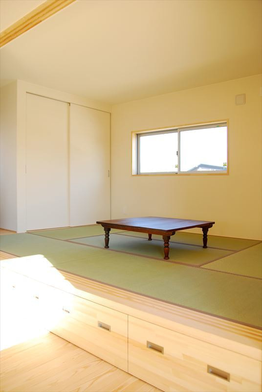 DO HOUSEの施工事例 外観はスクエアでシンプルですが、内装は、八溝杉の無垢床材に珪藻土クロス、そして構造の梁も表しで見せているので、とてもナチュラルで優しいテイストの家となっています。大きな吹き抜けのあるリビングには小上がりの和室がつながり、真冬でも2階の窓からの光もふんだんに差し込む、とても明るく開放的な空間の設計になっています。 敷地面積 床面積 308.34㎡ 110.55㎡ 前の施工事例 施工事例一覧 次の施工事例