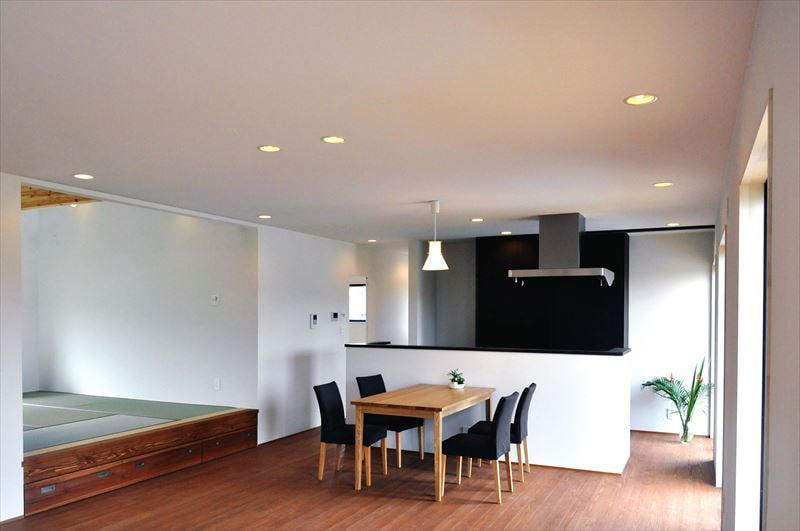 DO HOUSEの施工事例 片流れの組み合わせた、すっきりとしたデザインの平屋の家です。ハイサイドライトを設置して、家の奥まで外からの光が差し込むプランニングとなっています。リビングにつながる小上がりの和室は、寝室だけでなく客間など様々使い方ができる面白いスペースとなっています。内装は八溝杉の無垢床材に壁は珪藻土クロス、造作建具も珪藻土クロスで仕上げて、シンプルながらナチュラルなテイストを感じる空間となりました。 敷地面積 床面積 330.62㎡ 106.41㎡ 前の施工事例 施工事例一覧 次の施工事例