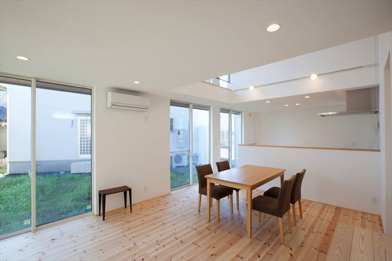 ダイニングの上は吹き抜けになっているので、冬でも2階の窓からの光もふんだんに差し込むパッシブなプランニングでもあります。