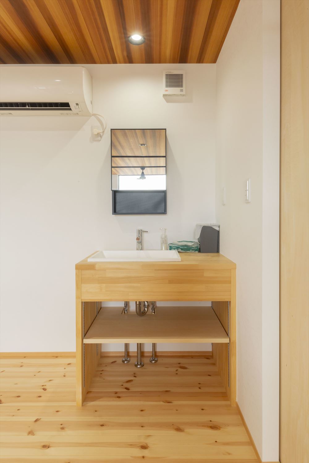 無垢床やオーダーメイドの洗面台・造作家具なども相まって、全体的にナチュラルで優しいテイストの空間となりました。