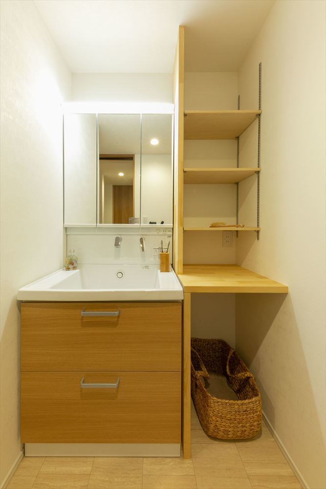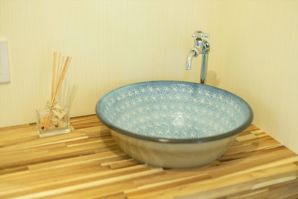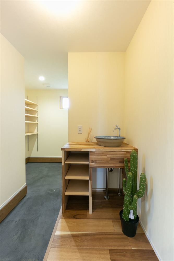 玄関を入ると広めのウォークインクロークとお施主様セレクトのボウルでの造作手洗いが特徴です。